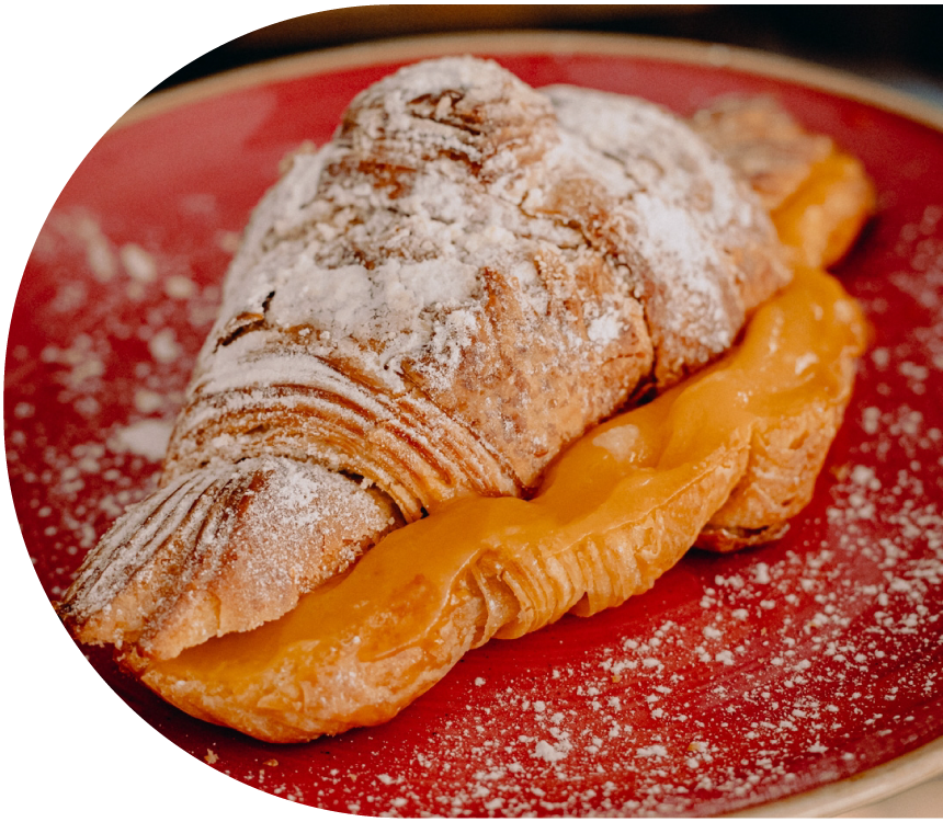 Cada croissant é feito diariamente com todo o cuidado e pode ser personalizado ao seu gosto. Escolha entre recheios doces inspirados na tradição portuguesa ou opções salgadas irresistíveis: